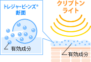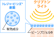 このビーンズジェルにクリプトンライトを照射することによってトレジャービーンズが割れ、有効成分が溶け出します。